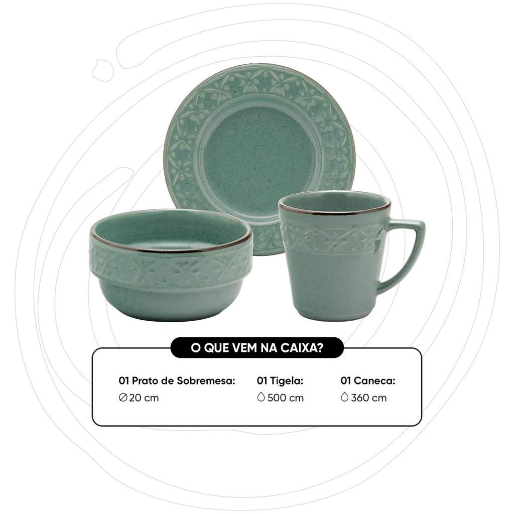 Jogo De Lanche 3 Peças Oxford Mendi Malaquita