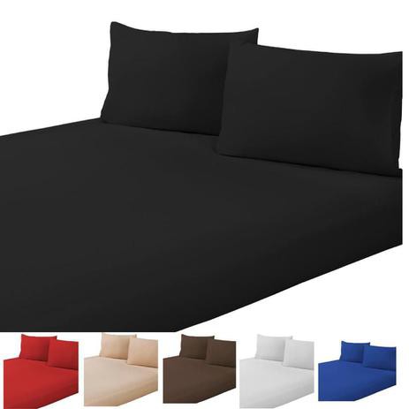 Jogo De Lençol 03 peças - Casal Padrão com Elástico - Cores Lisa - com Fronhas
