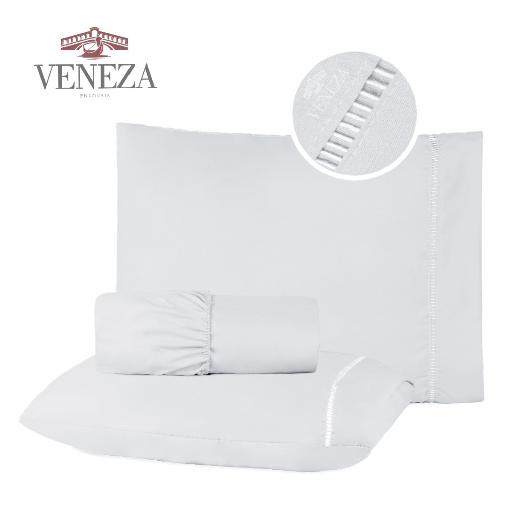 Bem Vindos à Veneza Enxovais amigos e clientes... Nosso produto possui um toque acetinado que traz além da maciez um toque a mais de sofisticação para o seu quarto. O lençol possui elástico em toda volta e as fronhas um lindo acabamento em PONTO PALITO! SOLTEIRO 03 PEÇAS, sendo 01 Lençol de Cima sem Elástico 1,45m x 2,50m 01 Lençol com elástico medindo 1,88 x 0,88 x 25 cm altura. 01 fronha com medida: 70cm x 50cm (acabamento em ponto palito). CASAL PADRÃO 04 PEÇAS, sendo: 01 Lençol de Cima sem Elástico 1,90m x 2,50m 01 Lençol com elástico medindo 1,88m x 1,38m x 30cm cm altura. 02 fronhas com medidas: 70cm x 50cm (acabamento em ponto palito) CASAL QUEEN 04 PEÇAS, sendo: 01 Lençol de Cima sem Elástico 2,10m x 2,50m 01 Lençol com elástico medindo 1,98m x 1,58 x 30 cm altura. 02 fronhas com medidas: 70cm x 50cm (acabamento em ponto palito). A fabricação é PROPRIA visando sempre qualidade e satisfação do cliente. Composição: Percal 400 fios acetinado Tecido: 100% Poliéster de excelente qualidade. Estaremos sempre a disposição para maiores informações por meio do campo de perguntas! Aguardamos sua compra! Obrigada. Observação: Lotes diferentes de tecidos podem apresentar variações de tonalidades mais escuras ou mais claras.