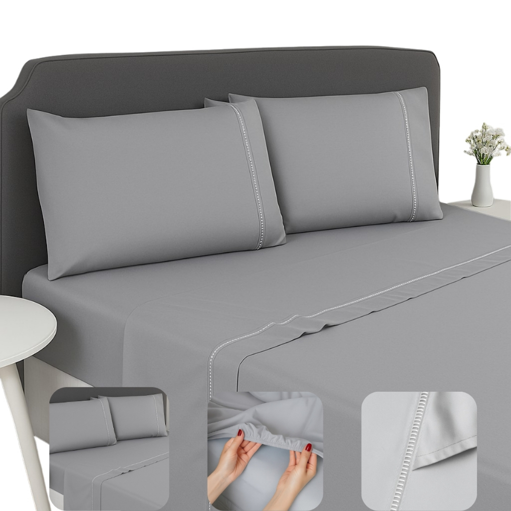 Jogo de Lençol 04 Peças Tecido Acetinado Micropercal 400 Fios Fronhas Ponto Palito