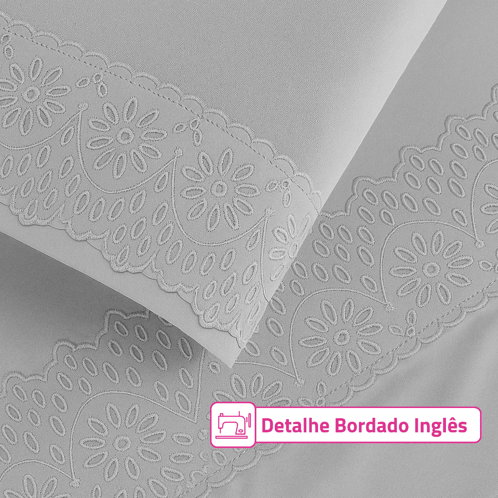 Jogo de Lençol 3 Peças Casal Padrão/Queen Size 400 Fios Com Elástico Extra Macio Lese Bordado Inglês