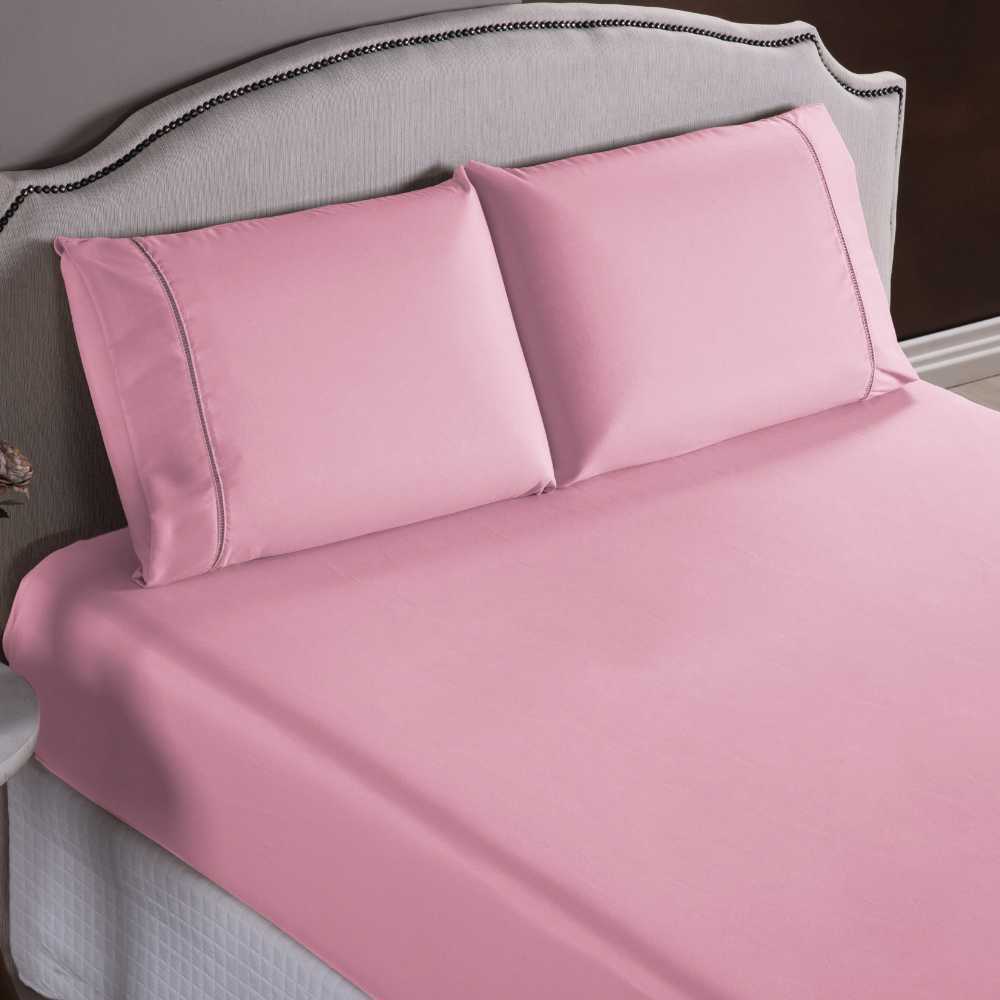 Jogo de Lençol 3 Peças Ponto Palito Em Tecido Percal 400 Fios King/Queen/Casal/Solteiro Com Elástico