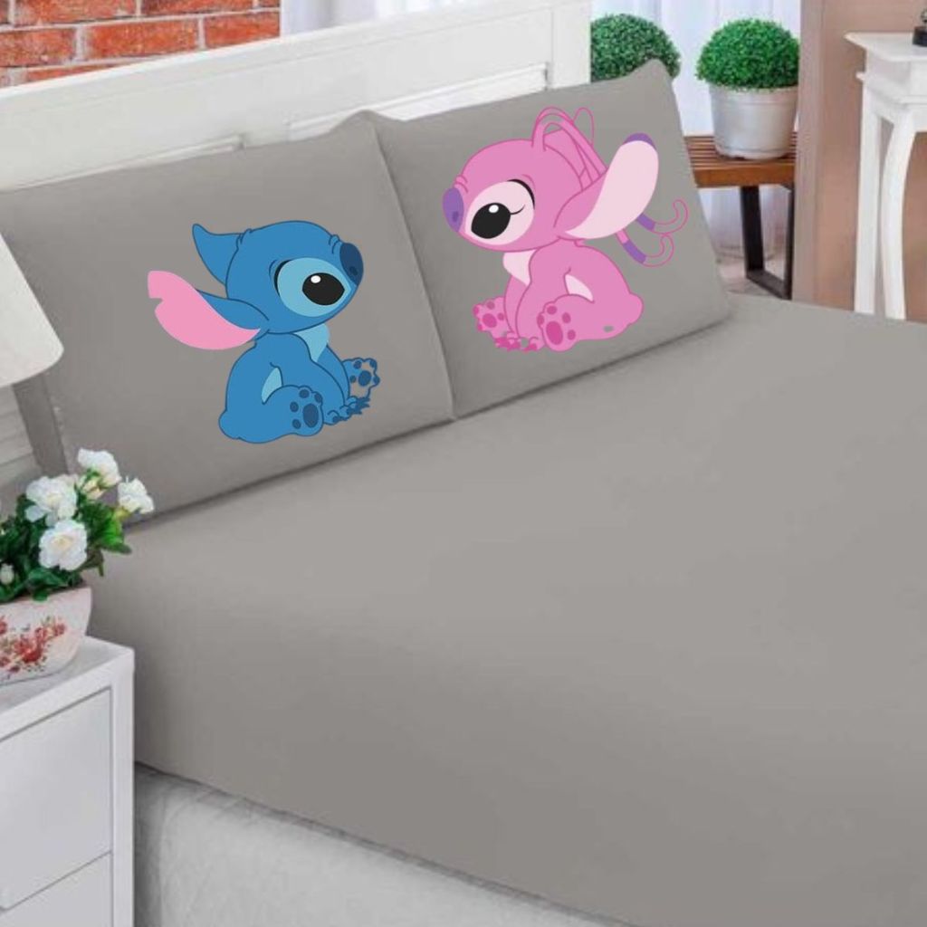 JOGO DE LENÇOL C/ELÁSTICO CASAL QUEEN/ KING STITCH SE OLHANDO 3 PEÇAS