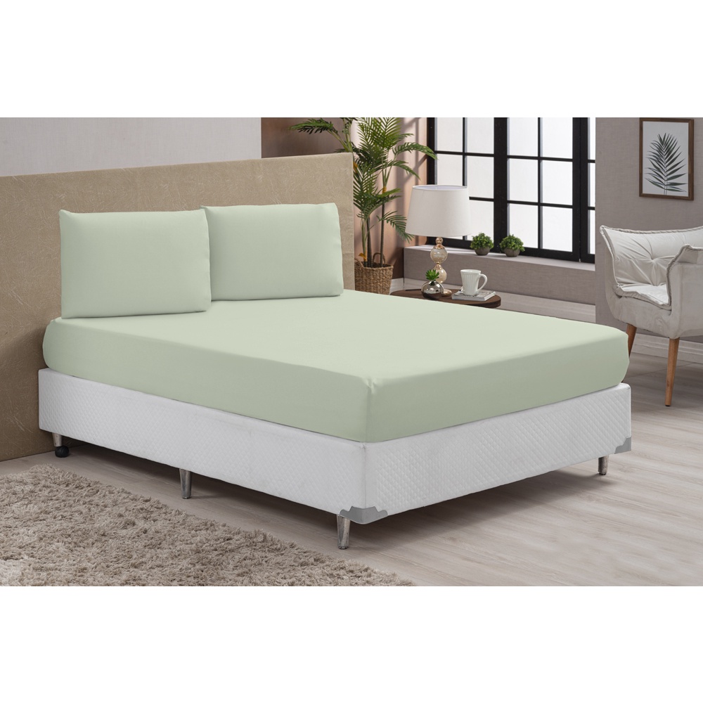 Jogo de Lençol Cama Casal Padrão Box 3 Peças Liso com Elástico em toda volta - 1,88m x 1,38m x 20cm