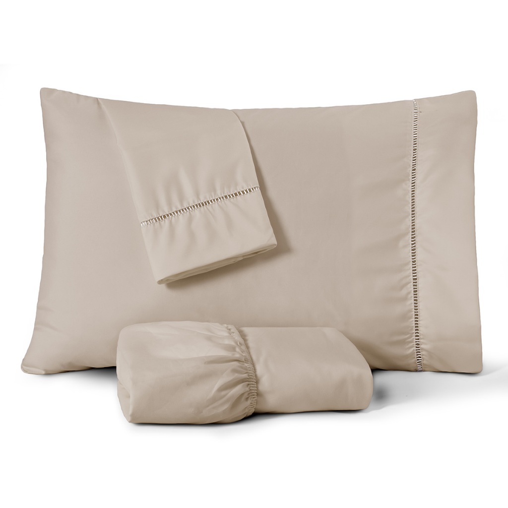 Jogo de Lençol Casal 400 Fios Percal Suave Fronha Ponto Palito Toque Aveludado 3 Pçs