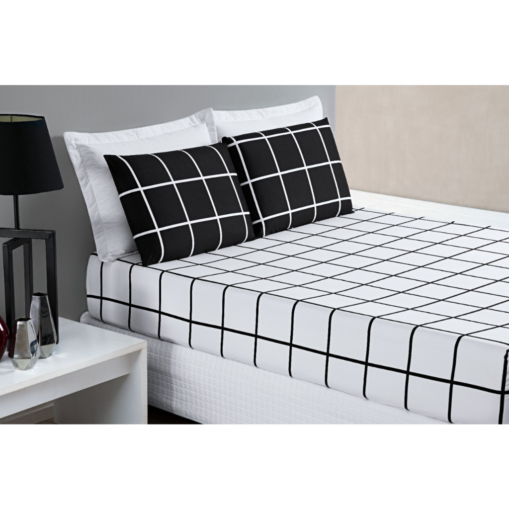 Jogo de Lençol Casal grid 200 fios micropercal acetinado 03 pçs
