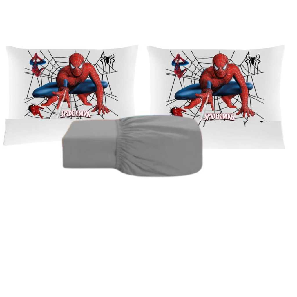 JOGO DE LENÇOL CASAL HOMEM ARANHA DE LUXO 3 PEÇAS FRONHA LENÇOL DE ELASTICO SPIDER MEN