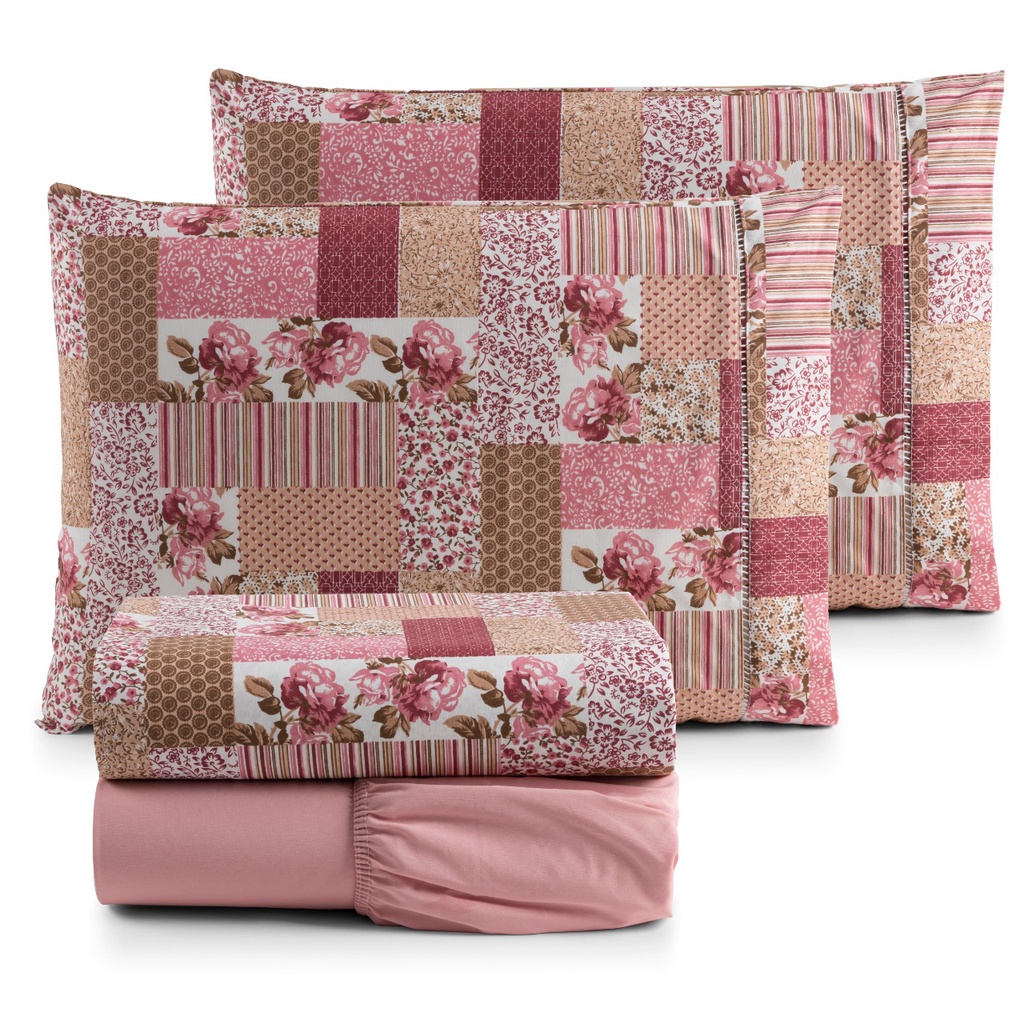 Jogo de Lençol Casal Queen Estampado 4 Peças Ponto Palito Algodão