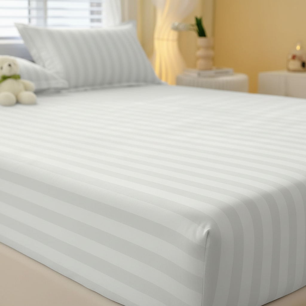 Jogo De Lençol Com Elástico Roupa de Cama Percal Macio Nao Desbota Listrado Estampado