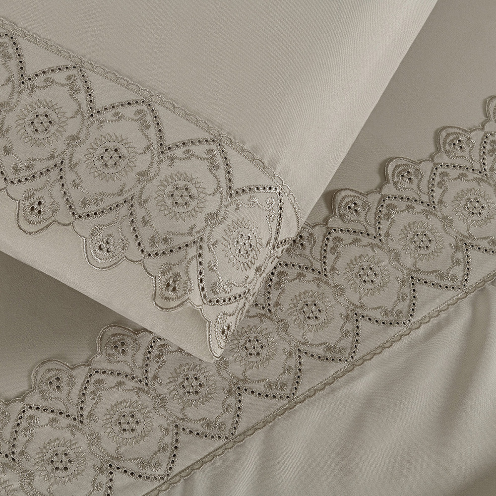 Jogo de Lençol Completo - King/Queen/Casal/Solteiro - 4 Peças Percal 200 Fios Com Laise Bordado Luxo