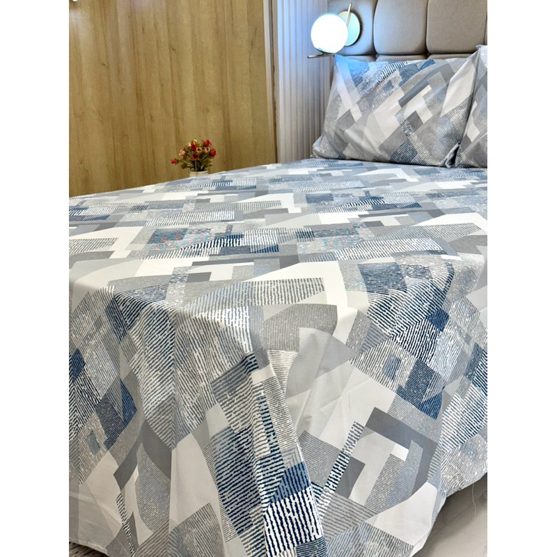 Jogo de Lençol de Casal 3 Peças Percal Flex Macio Com Toque de Algodão Suave Estampa Discreta Neutro