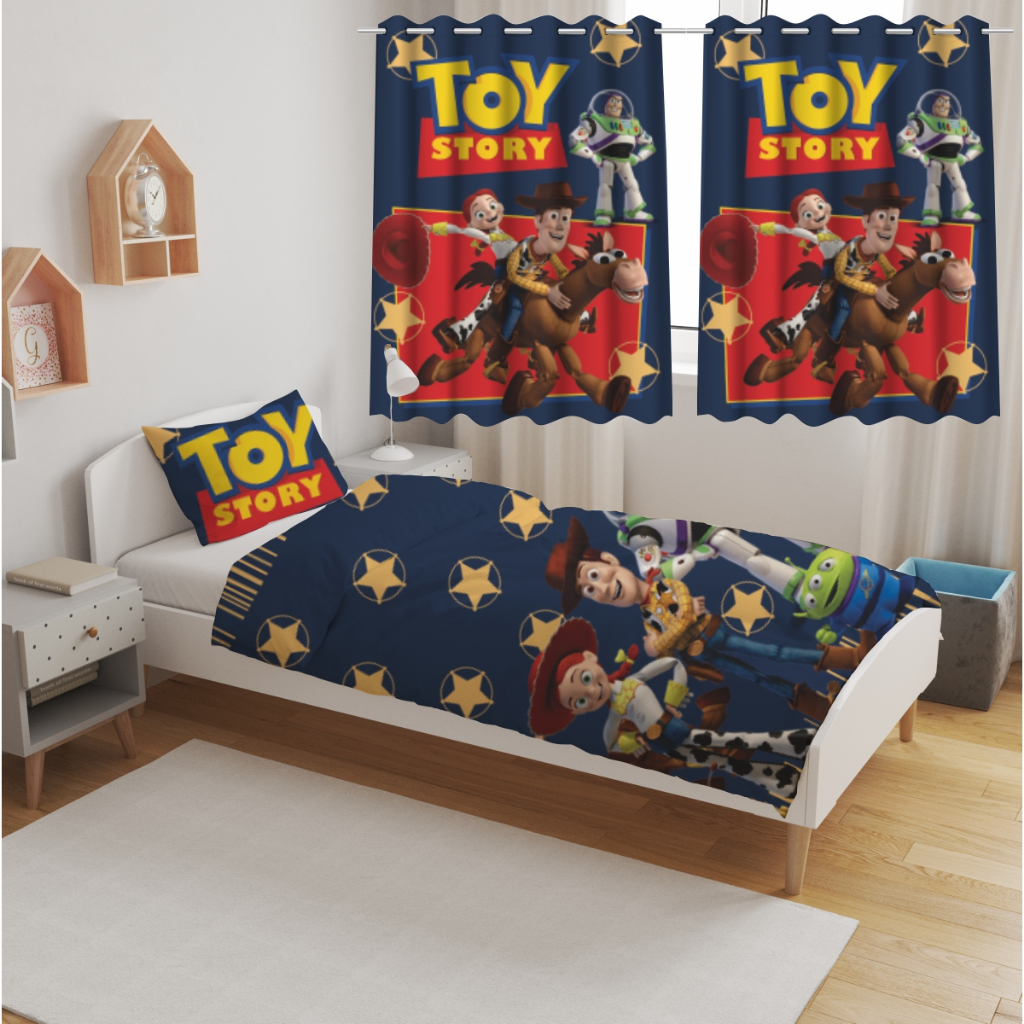 Jogo de Lençol e Fronha + Cortina Toy Story - Kit Completo ou Separado Um Mundo de Aventuras