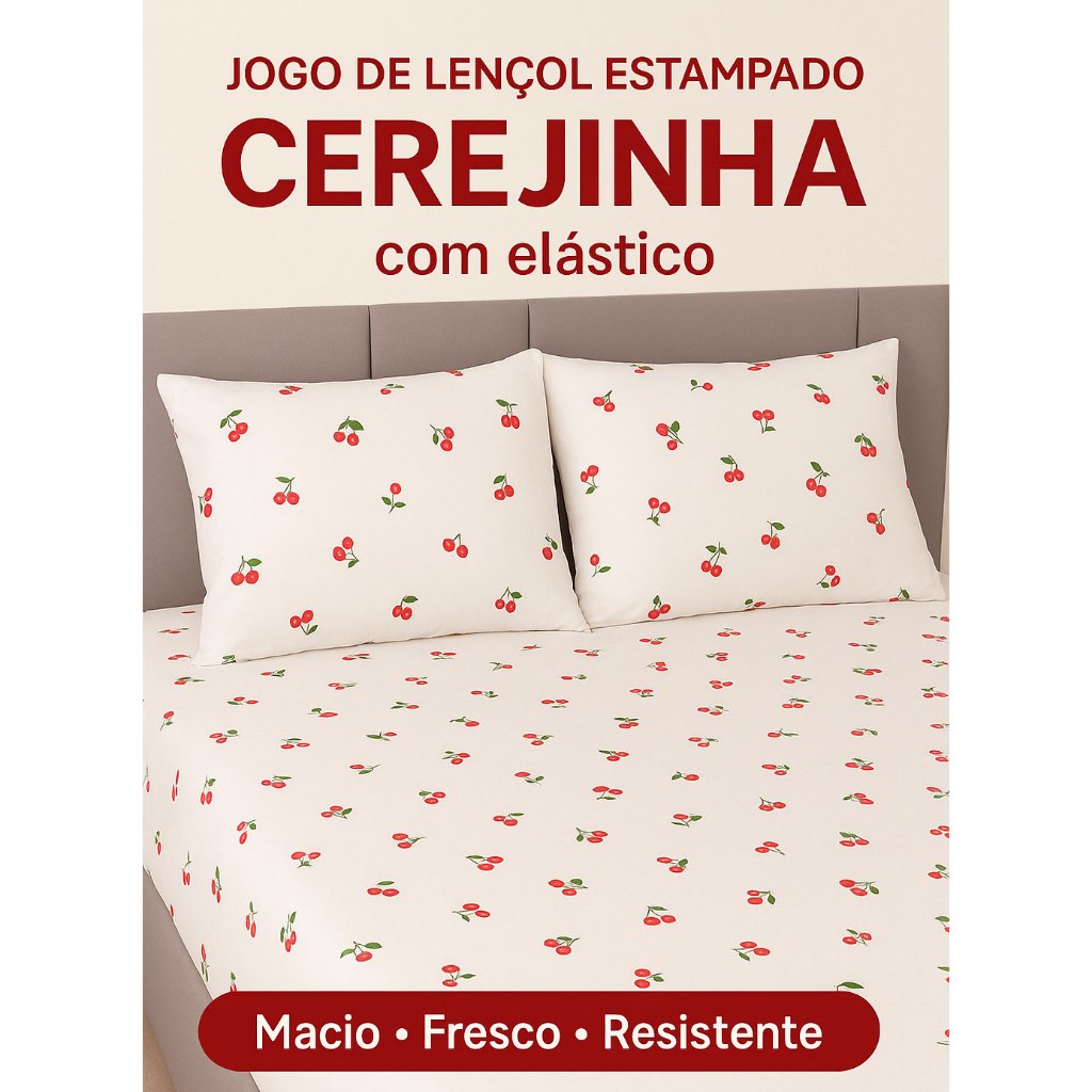| Jogo de Lençol Estampado Cereja 180 Fios com Elástico Algodão Solte... este produto | R$ 43,70 | — | 4.9/5 | 939 |