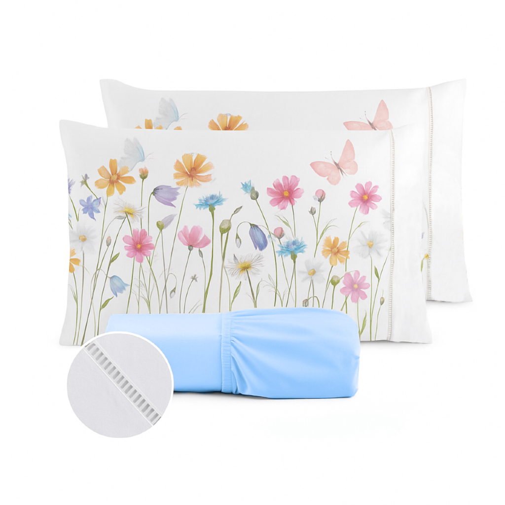 Jogo de Lençol Fronha Aquarela Estampada Micropercal 400 Fios Ponto Palito - Novidade