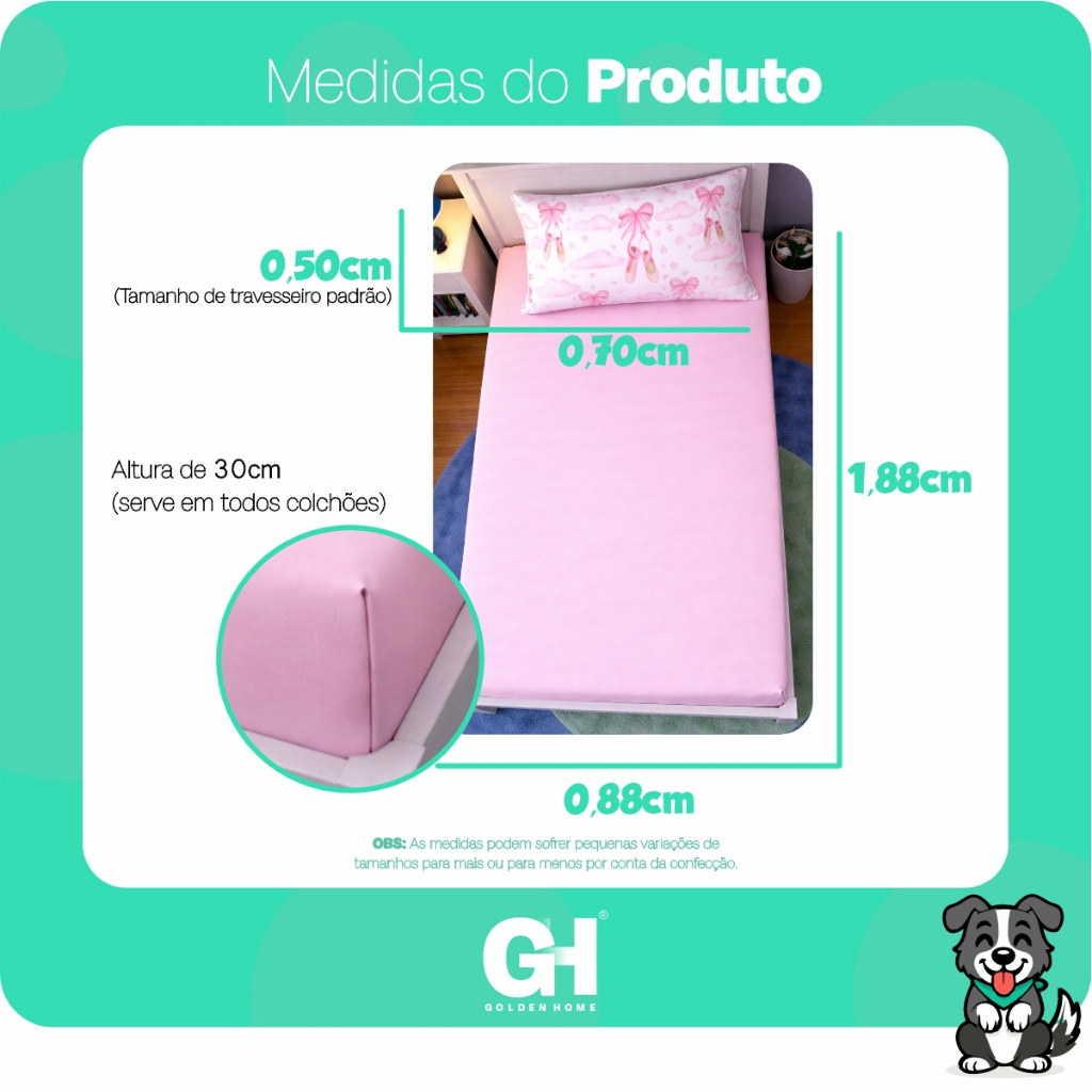 Jogo de Lençol Infantil Menina Solteiro Micropercal 2 Peças com Fronha Estampada