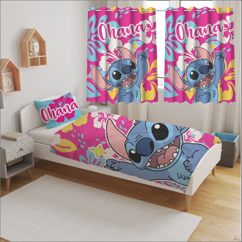 Jogo de Lençol Infantil Solteiro Personagem Azul Rosa Ohana, Decoração para Quarto