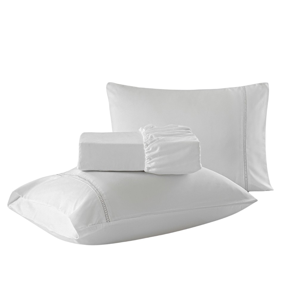 Jogo de Lençol King 3 Peças Milano Percal 400 Fios Ponto Palito - Branco
