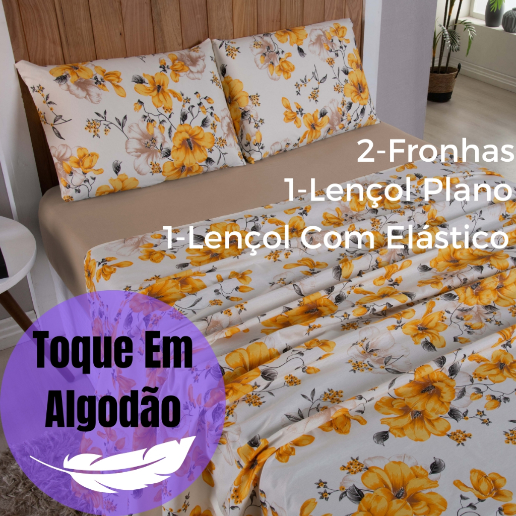 Jogo de Lençol King 4 Peças 200 Fios Estampado