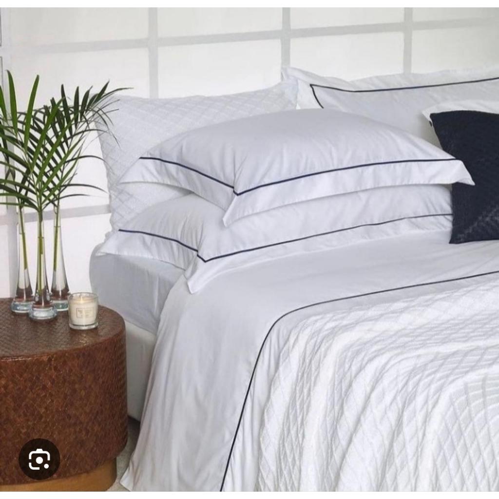 Nada é mais revigorante do que uma noite de sono bem descansada. O Jogo de Cama King 4 Peças 180 Fios Soutache foi criada para transformar sua cama em um verdadeiro refugio de conforto e elegancia. Se voce valoriza o bem estar e acredita que pequenos detalhes fazem toda diferenca no dia a dia, este jogo de cama é a escolha ideal para elevar sua rotina de descanso. . Tecido 180 Fios de Algodão: Confeccionado em tecido de qualidade superior, o material é leve, macio e oferece um toque suave a pele. Sua respirabilidade proporciona noites agradaveis em todas as estações. . Acabamento Soutache Sofisticado: Os delicados detalhes em soutache trazem um charme adicional, criando um visual refinado e moderno que valoriza a decoração do quarto. . Conjunto Completo (4 Peças): . 1 Lencol com Elastico: Ajuste perfeito ao colchão, proporcionando praticidade na organização da cama. . 1 Lençol de Cima com Barra Elegante: Ideal para um acabamento impecavel. . 2 Fronhas Coordenadas com Detalhe em Soutache: Completa a composição com harmonia e beleza. . Tamanho King Perfeito: Feito especialmente para camas King, garantindo um caimento impecavel que equilibra funcionalidade e estetica. . Duravel e Facil de Cuidar:Desenvolvido para manter sua maciez e cores mesmo apos diversos ciclos de lavagens, ideal para o dia a dia. . Composição: 90%Algodão/10%Poliester (Tecido 180 Fios) . Instrução de Lavagem: De preferencia para sabão neutro. . Cuidados Adicionais: Pode ser lavado na maquina de lavar, no modo delicado. Secar a sombra. TAMANHO KING: 1 Lençol de Cima 2.80m x 2.40m. 1 Lençol de Baixo com Elástico ao redor de todo o Lençol para melhor fixação no Colchão. (Não fica saindo da cama). Para Colchão de 2.00m x 2.03m x 40cm de altura. 2 Fronhas com Aba dos 3 Lados 70cm x 50cm. BOAS COMPRAS!!!
