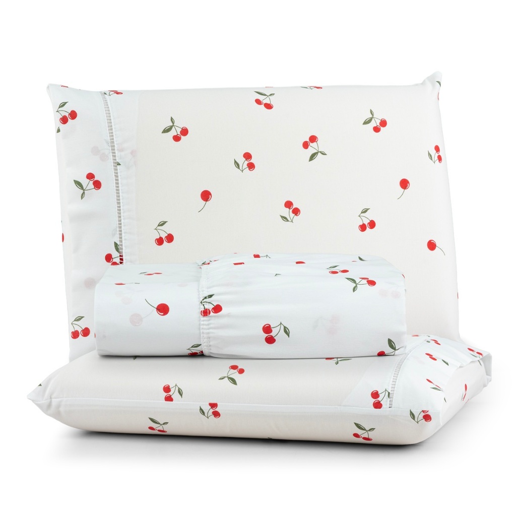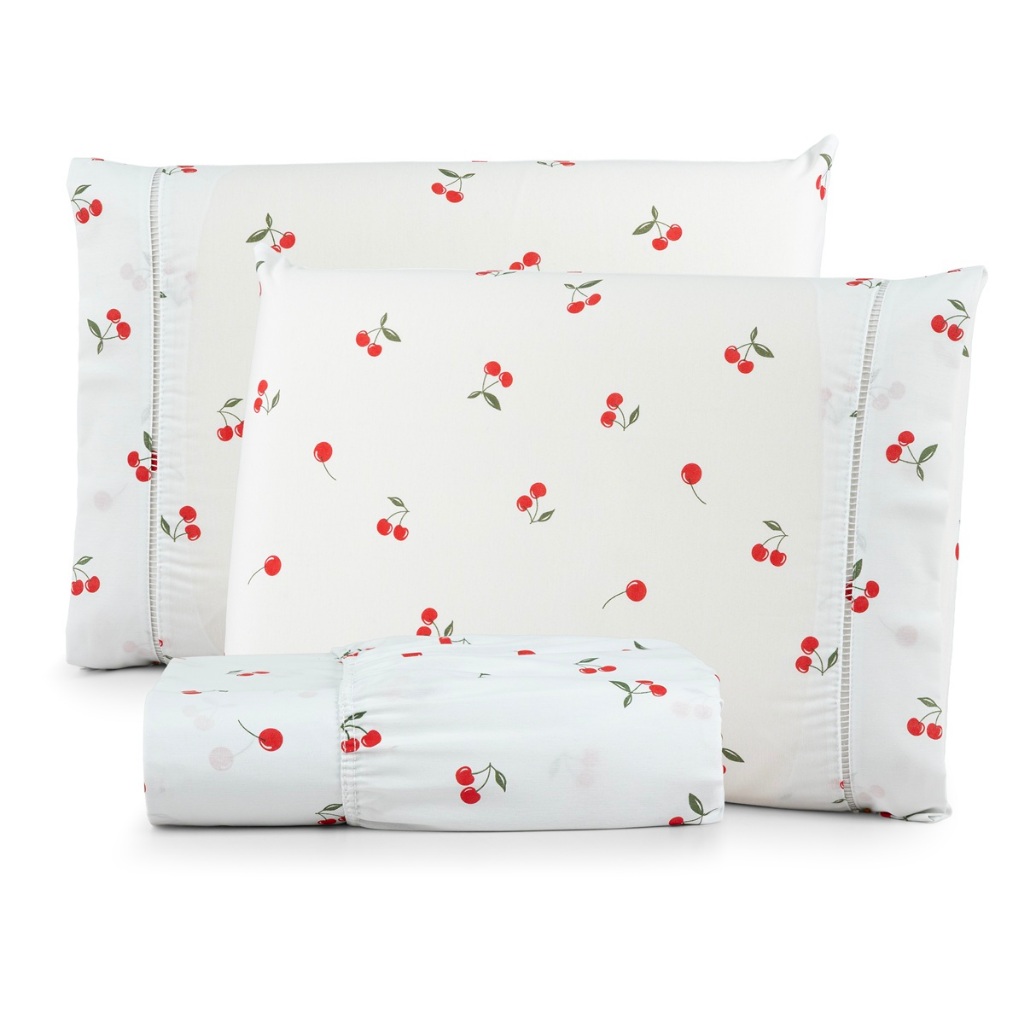 Jogo De Lençol Queen 3pçs Estampado 300 Fios C/ Elástico Cerejas