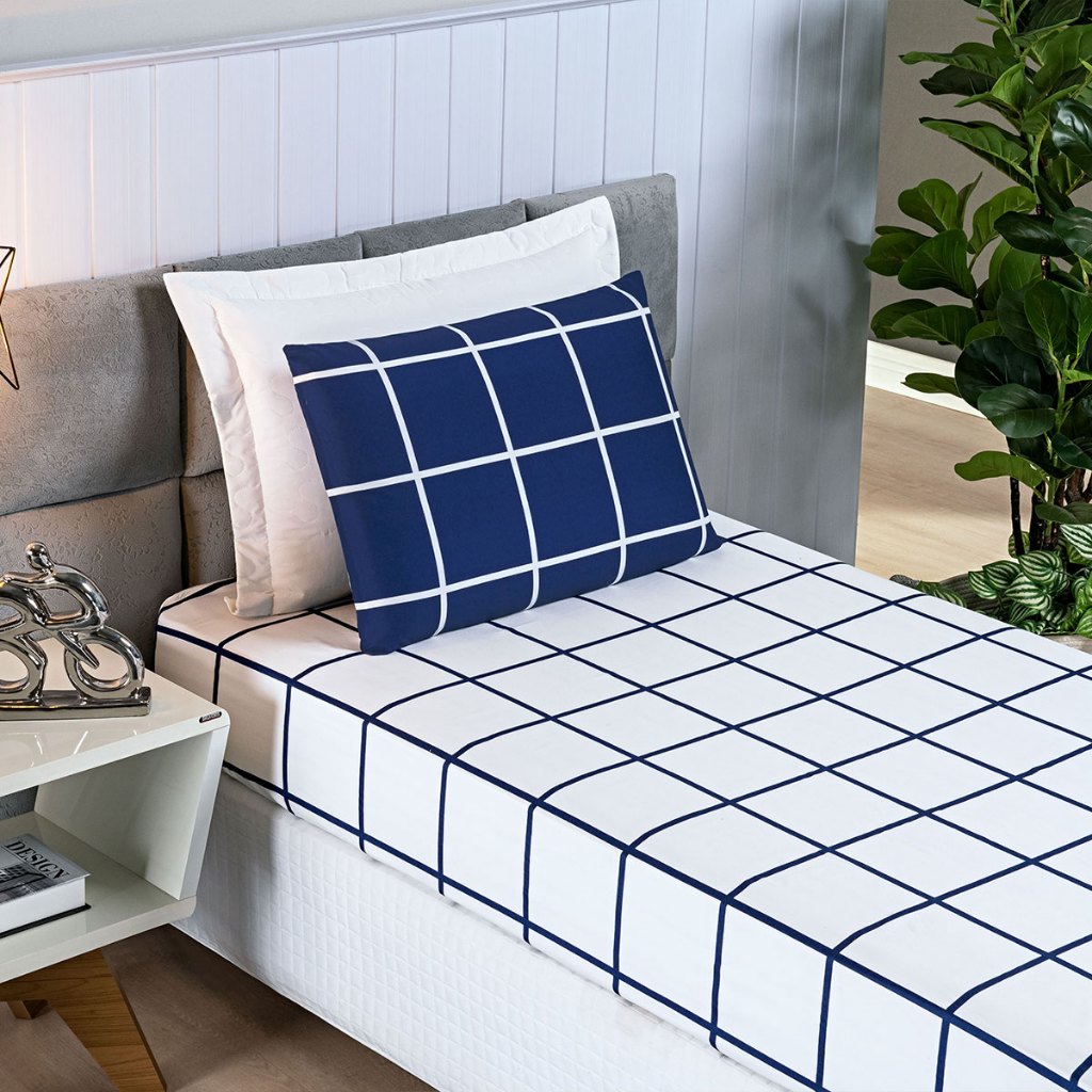 Jogo de Lençol Solteiro 2 Peças Percal 200 Fios Estampado Xadrez Austin Maciez e Durabilidade