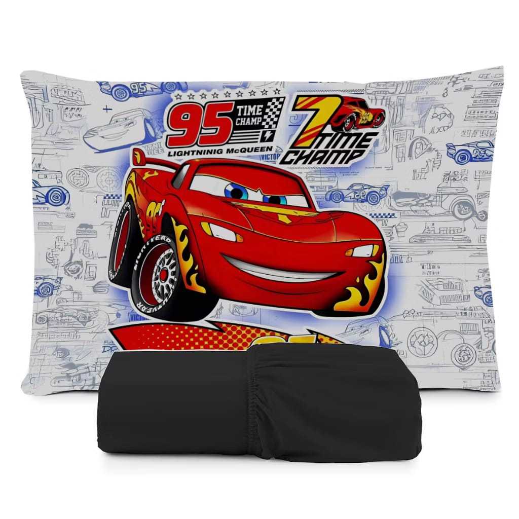 JOGO DE LENÇOL SOLTEIRO DE LUXO INFANTIL CARROS MCQUEEN FRONHA TRAVESSEIRO LENÇOL DE ELASTICO