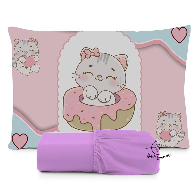 JOGO DE LENÇOL SOLTEIRO GATO GATINHO ANIMAL FRONHA TRAVESSEIRO, LENÇOL DE ELASTICO