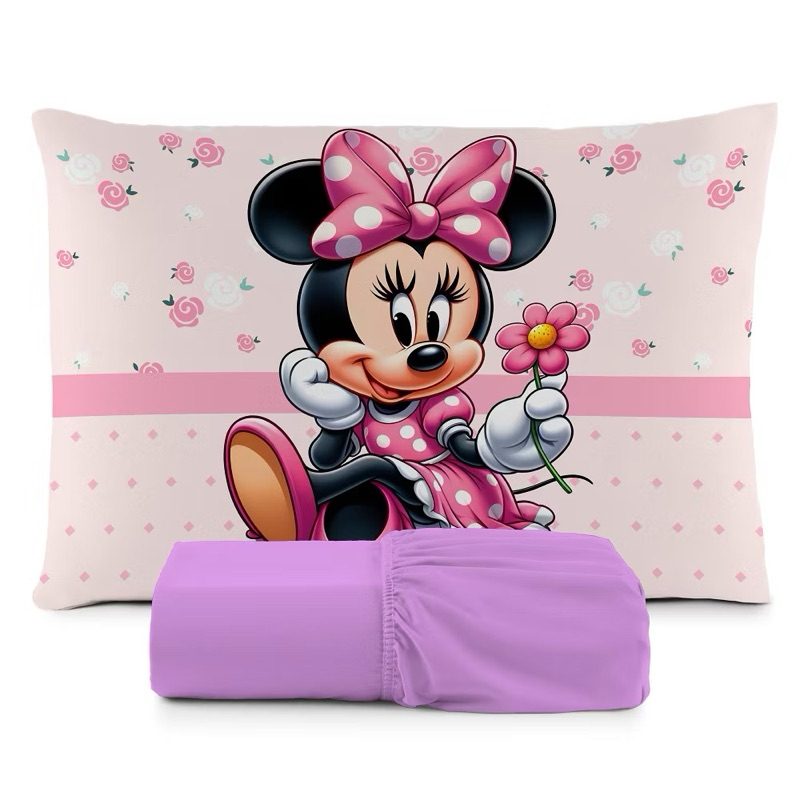 JOGO DE LENÇOL SOLTEIRO INFANTIL MINNIE FLOR DELICADA FRONHA TRAVESSEIRO, LENÇOL DE ELASTICO