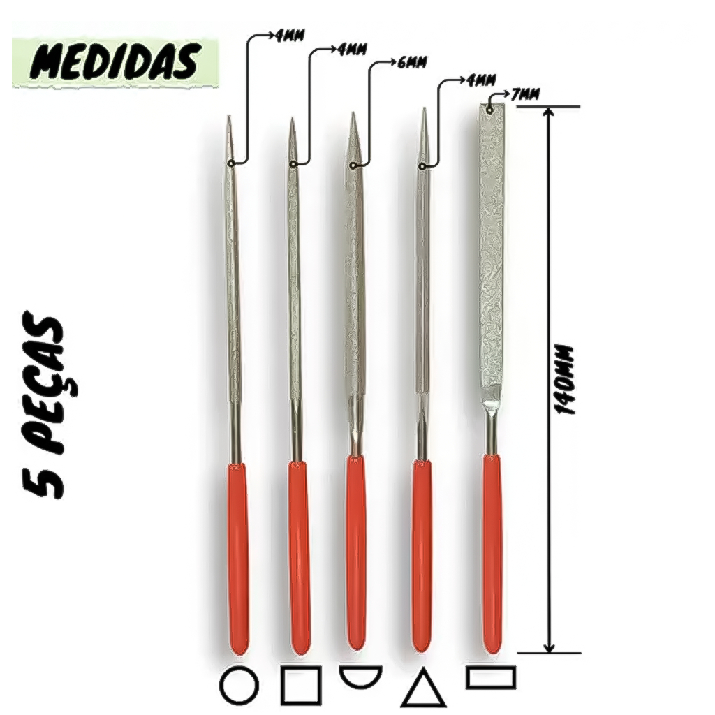 Jogo De Limas Agulha Diamantada 5 Peças Entalhar Desbastar Madeira Metal Plástico Hobby Profissional