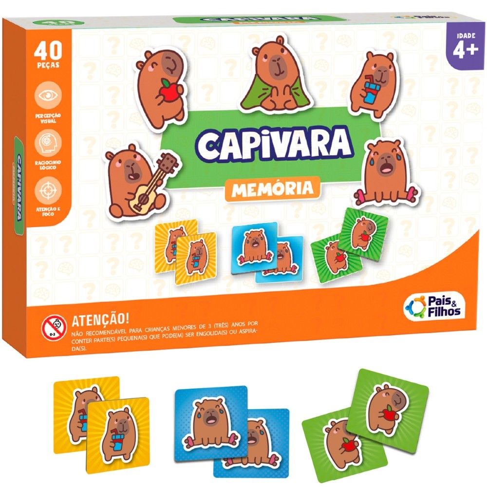 JOGO DE MEMÓRIA CAPIVARA 40 PEÇAS PAIS E FILHOS BRINQUEDO RACIOCÍNIO EDUCATIVO FOCO ANIMAL CARTAS &