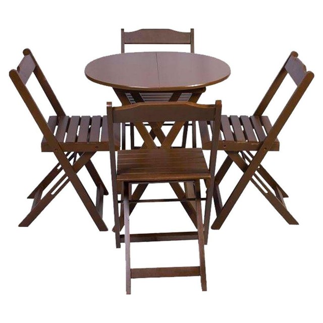 | Jogo De Mesa Dobrável 70X70 Com 4 Cadeiras De Madeira Imbuia - Marrom | R$ 508,15 | — | 5.0/5 | — |