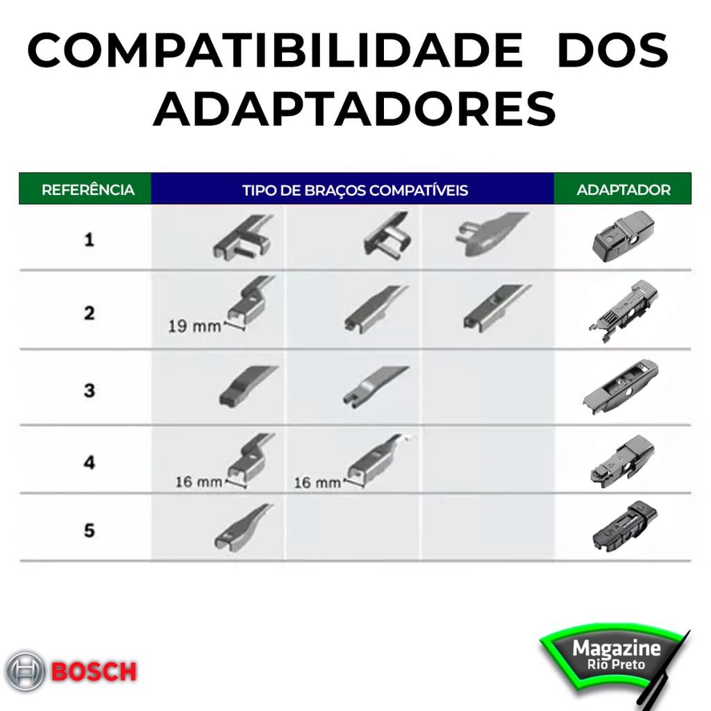 Par de palhetas para o limpador de para-brisa dianteiro BYD Dolphin 2023 - Original Bosch Par de Palheta Aerofit Bosch: 01 - Palheta Aerofit Multiclip Bosch (lado motorista) 26 '' 01 - Palheta Aerofit Multiclip Bosch (lado passageiro) 14 " APLICAÇÃO: - BYD DOLPHIN 2023 - BYD DOLPHIN 2024 ENCAIXE: ADAPTADOR (4) ** PRODUTO A PRONTA ENTREGA ** OBS: As informações contidas no verso da embalagem são apenas sugestões de uso porém o produto é compatível com o veículo de ano e modelo anunciado acima. Podem haver pequenas variações em relação ao tamanho para maior ou menor em relação as palhetas originais do veículo mas não interferem em seu uso e eficiência, o uso deste produto é indicado pela montadora do veículo e pela fabricante do produto. *Em caso de dúvidas para a instalação, consulte o vídeo disponibilizado no anúncio do produto ou entre em contato conosco para que possamos disponibilizar o material explicativo de como seguir com a aplicação em seu veículo. Substitua as palhetas do seu veículo pelo menos uma vez por ano. Se a palheta for nova e o defeito persistir, verifique também a regulagem dos braços do limpador de para-brisa. Bosch é o único fabricante de palhetas que desenvolveu um processo inovador de revestimento da borracha, o Power Protection Plus, um tratamento interno da borracha, que garante funcionamento suave, perfeita ação de limpeza e maior vida útil. As demais palhetas existentes no mercado possuem tratamento superficial da borracha, o que acaba prejudicando sua durabilidade e eficácia com o uso contínuo. As palhetas do limpador de para-brisas da Bosch são compostas por componentes com qualidade certificada, o que assegura uma limpeza ideal. Características: - Nova geração de palheta Bosch aerodinâmica, substitui a palheta convencional nos veículos. - Desenho aerodinâmico – mantém a pressão uniforme em todo o para-brisa. - Longa vida útil, sem partes metálicas expostas, mantendo a funcionalidade e estética visual do produto. - Tratamento de grafite, garantia de uma limpeza mais suave. - Funcionamento suave. - Perfeita ação de limpeza. - Maior vida útil. - A melhor visibilidade e o enorme nível. - Alta qualidade e tecnologia de ponta. As palhetas perdem propriedades de limpeza pela constante exposição às mudanças de temperatura, sol, chuva, além de substâncias corrosivas do ambiente. Por isso precisam ser substituídas regularmente, para garantir boa visibilidade e segurança ao motorista. Substitua as palhetas ao observar: - Problemas no para-brisa: - Formação de faixas e riscos - Ruído ou trepidação - Formação de névoa - Falhas na limpeza - Problemas nas palhetas: - Lâmina quebradiça - Lâmina torta - Lâmina rompida