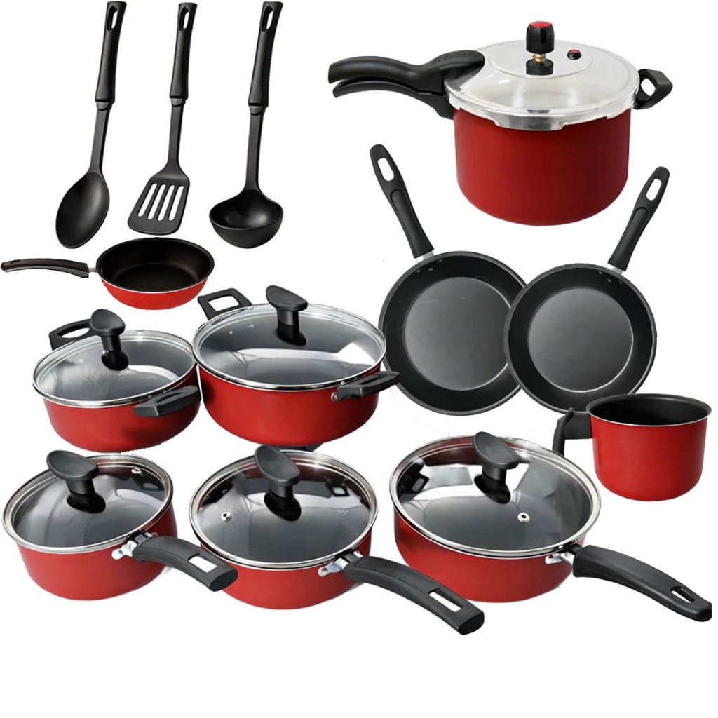 Jogo de Panela 17 Peças +Panela de Pressão 4,5L Conjunto Kit Teflon Antiaderente Frigideira Caçarola
