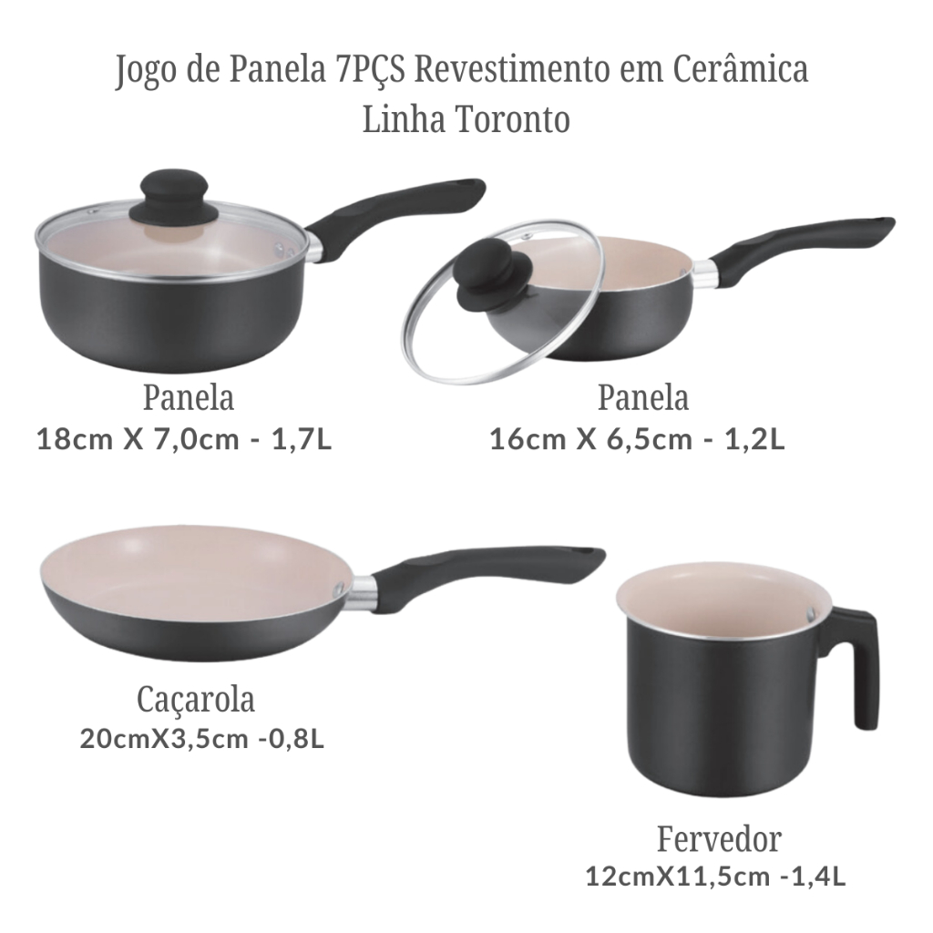🔹 Características:Revestimento em Cerâmica: Proporciona um cozimento mais rápido e uniforme, permitindo o uso de menos óleo e facilitando a limpeza.Cabo Silicone Soft Touch: Oferece um manuseio confortável e seguro, pois não aquece e proporciona uma pegada firme. 🔹 Design Elegante: Com acabamentos em cores neutras e cabos ergonômicos, este jogo de panelas adiciona um toque de elegância a qualquer cozinha.Espessura de 1,8 mm: Garante durabilidade e um aquecimento eficiente, distribuindo o calor de maneira uniforme. ✅ Composição do Conjunto: 1 - Caneca, leiteira, fervedor Ø14cm 1 - Frigideira Ø 20cm 1 - Panela Ø 16cm 1 - Panela Ø 18cm 1 - Panela Ø 20cm 1 - Caçarola Ø 22cm 1 - Caçarola Ø 24cm POLÍTICA DE TROCA: - Importante, caso seu produto venha com defeito, não se apavore! Somos uma empresa séria que se preocupara com seus clientes onde a satisfação e qualidade são alguns de nossos pilares. Passos a seguir: Peça devolução grátis e auxílio ao vendedor para que ele te ajude a fazer a troca do produto. LEMBRANDO QUE defeitos ou erros acontecem até com os melhores, o importante é honrarmos e sermos honesto. CONFIE EM NÓS. Quando receber as mercadorias, se você não estiver satisfeito, entre em contato conosco primeiro, resolveremos sinceramente o problema e se você não estiver satisfeito com nosso serviço pós-venda, poderá deixar um feedback para os pedidos. Em caso de dúvidas, use nosso chat para nos contatar, te responderemos com toda eficiência e Prestatividade. PERGUNTAS FREQUENTES: 1)Quanto tempo demora para receber o meu pedido? R: O tempo de entrega varia conforme o tipo de frete e a distância do destino. Você terá o prazo aproximado ao inserir o CEP do destino na página do pedido e também após concluir a compra. 2)Quero entrar em contato e tirar uma dúvida, como faço? R: Existe um campo de mensagens na página do produto, lá você poderá entrar em contato com a gente. Nosso atendimento se concentra no horário comercial. 3)Mandei uma mensagem, mas não obtive retorno. O que devo fazer? R: Nosso atendimento se concentra no horário comercial. Durante a noite e aos finais de semana, as respostas podem demorar um pouco ou não acontecer até o início do horário comercial. Pedimos desculpas por qualquer transtorno. 4)O meu pedido já foi processado ou despachado. Consigo fazer alguma alteração no pedido? R: Não. Alterações podem ser feitas apenas antes da separação do pedido, ou seja, pouco tempo após o pedido ser concluído. QUALQUER DÚVIDAS POSTE NO CAMPO DE PERGUNTAS OU CHAME NO CHAT QUE RESPONDEREI O MAIS BREVE POSSÍVEL