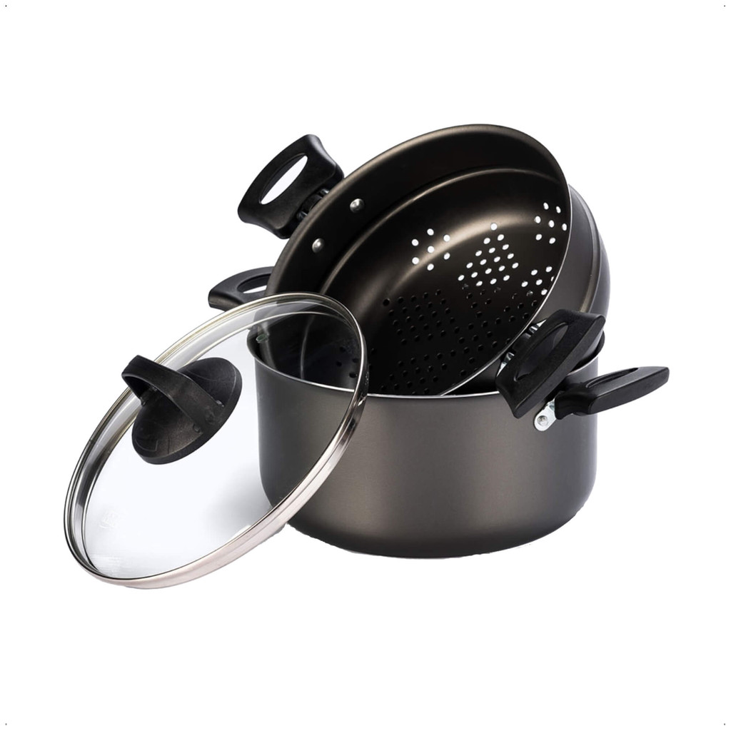 Jogo de Panela Cozimento a Vapor 3L Antiaderente 3x1 Pegadores Antitérmico Cozivapor MTA Cozinha