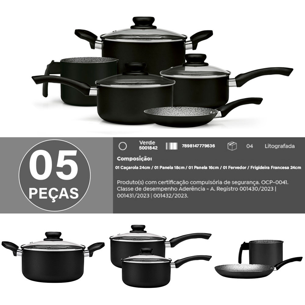 Jogo De Panela Panelux Maximum Stone Preto Antiaderente 5pçs