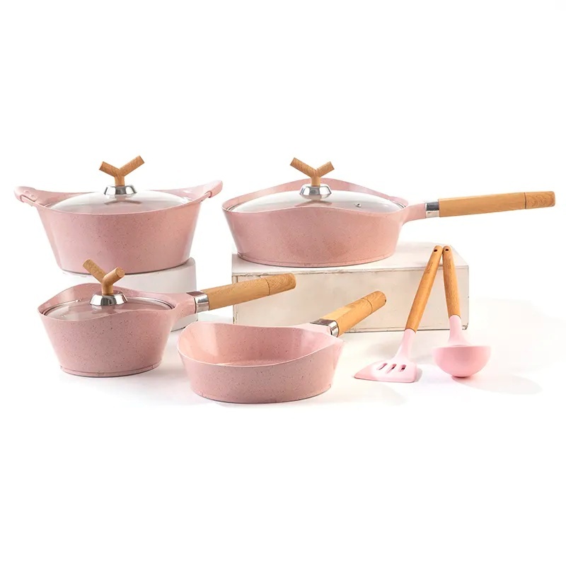 Conjunto de panelas de indução com revestimento cerâmico com 14 peças. Projetadas para eficiência e durabilidade, são ideais para cozinhar de maneira saudável e fácil de limpar. Compatível com todos os tipos de fogões, garantem aquecimento rápido e uniforme, proporcionando uma experiência culinária gourmet em casa. O Conjunto de Panelas 14 peças possui 2,5mm de espessura, o que melhora o preparo de seus alimentos, pois a temperatura é dissipada de maneira uniforme e favorece o cozimento, evitando que sua comida queime facilmente. O kit de panelas é indicado para todos fogões, sejam eles a gás, indução, vitro-cerâmico ou elétrico. É composto por 3 caçarolas, 1 panela com cabo e 1 frigideira e um copo Leiteiro todos em alumínio com revestimento nano cerâmico granite. As panelas não grudam, são mais fáceis de limpar e mais saudáveis, pois necessitam de menos óleo para o cozimento e são livres de metais pesados. As peças do conjunto possuem cabos e alças com acabamento Soft-Touch com efeito amadeirado, que dão um toque macio e não esquentam, evitando acidentes. As tampas também possuem efeito amadeirado e suas bordas são em silicone removível, oque facilita sua lavagem e limpeza, são feitas de vidro temperado com saídas para vapor em inox, trazendo um design inovador, ideais para você que gosta de sofisticação e elegância em sua cozinha. Nosso Jogo de Panelas é completo e tornará o preparo de suas refeições muito mais prazeroso! Detalhes: Com tampa de Vidro e bordas em silicone removível; Conjunto completo; Revestido em Cerâmico Cabos Revestidos efeito amadeirado Antiaderente Panelas de Indução Espessura 2,5mm Cores: Rosa Dimensões do Produto: Dimensões da Caçarola P (D x A): 20x9,5cm Dimensões da Caçarola M (D x A): 24x11cm Dimensões da Frigideira (D x A): 28x12,5cm Dimensões da Frigideira (D x A): 24x7,5cm Dimensões da Panela (D x A): 18x9cm Conteúdo na Embalagem 14 peças: 2 Caçarola 2 Frigideira 4 Tampas de Vidro 2 Colher de Silicone 4 almofada de silicone