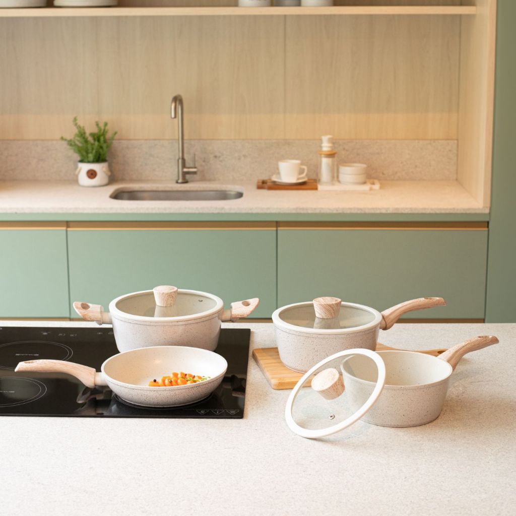 Jogo de Panelas 4 Peças Brinox Antiaderente Ceramic Life Sirius Preta e Vanilla - Com indução