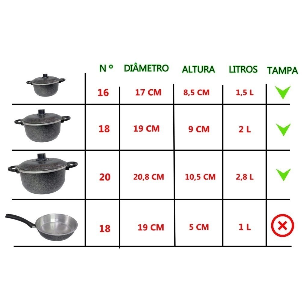 Jogo de Panelas 4 Peças com Frigideira Alumínio Reforçado
