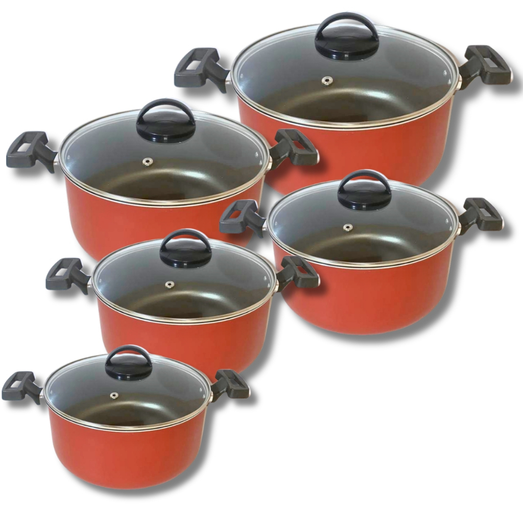 Jogo De Panelas 5 Peças Antiaderente Com Tampa De Vidro