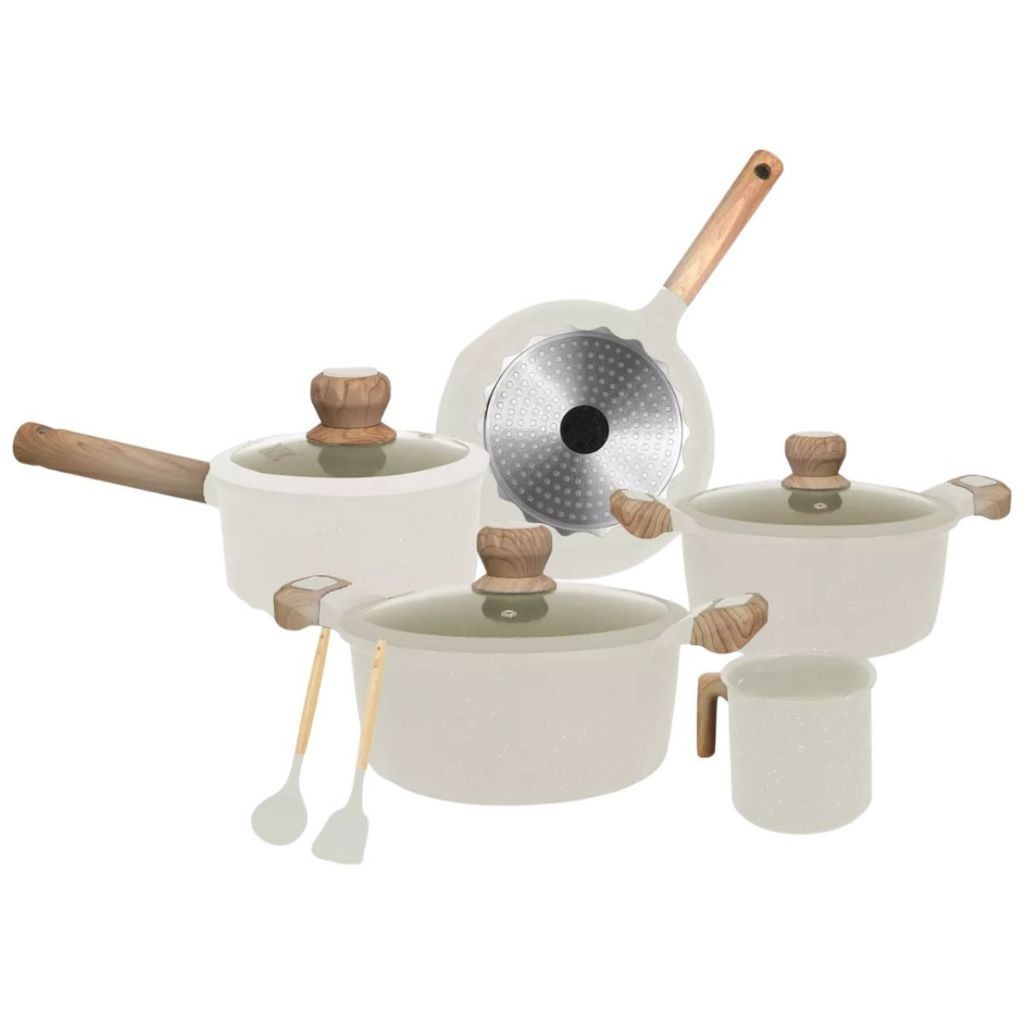 Jogo de Panelas 5 Peças Indução e Gás Conjunto de Panelas Revestido em Cerâmica Granito Antiaderente Frigideira Caçarola