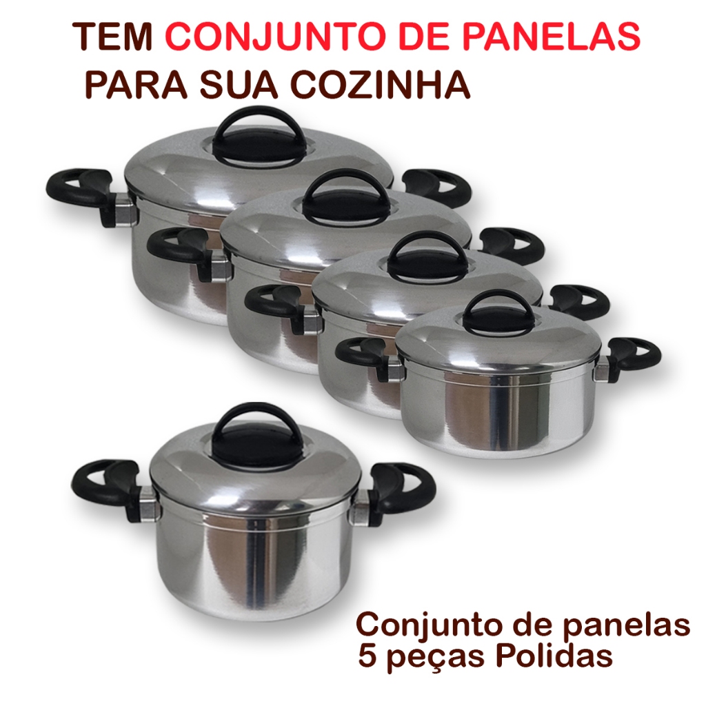 Quer um toque especial para a sua cozinha?! Então você não pode deixar faltar os nossos produtos. A sua cozinha vai ganhar um toque moderno e ficar um encanto! CONTÉM 5 PEÇAS - 1 Caçarola (Boca 16cm - 1 Caçarola (Boca 18cm - 1 Caçarola (Boca 20cm - 1 Caçarola (Boca 22cm - 1 Caçarola (Boca 24cm DIFERENCIAIS: - Material: Alumínio. - Alça: Baquelite PRONTA ENTREGA - ENVIAMOS PARA TODO BRASIL - FOTOS REAIS - SEU PRODUTO BEM EMBALADO NA CAIXA Estamos a disposição para tirar qualquer dúvida
