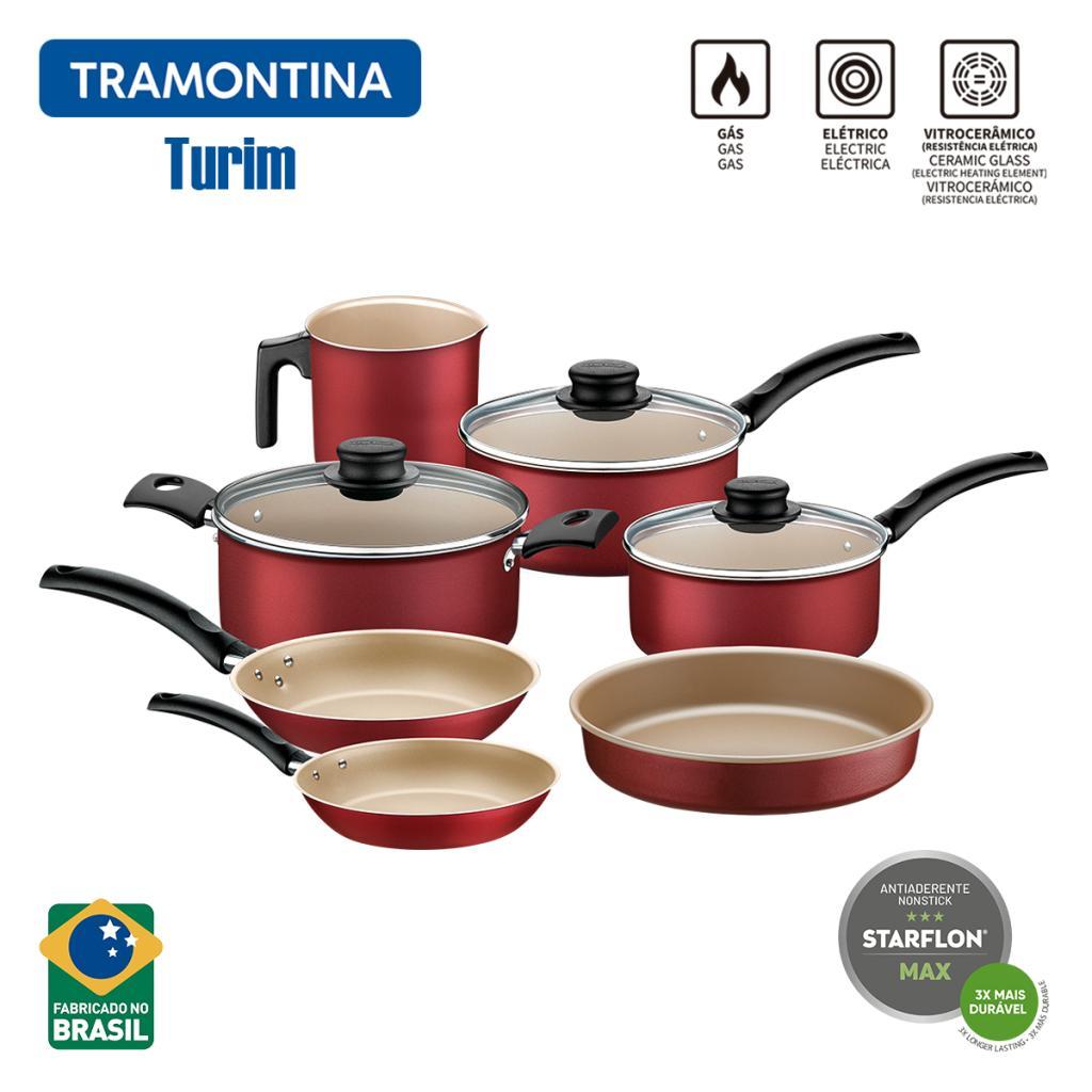 Jogo de Panelas 8 Peças Tramontina Turim Vermelha Com Panela de Pressão Classic 4,5L Panelux Polida