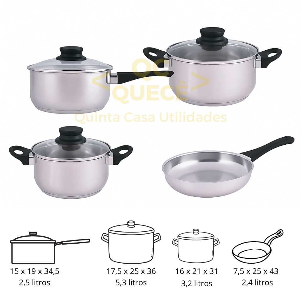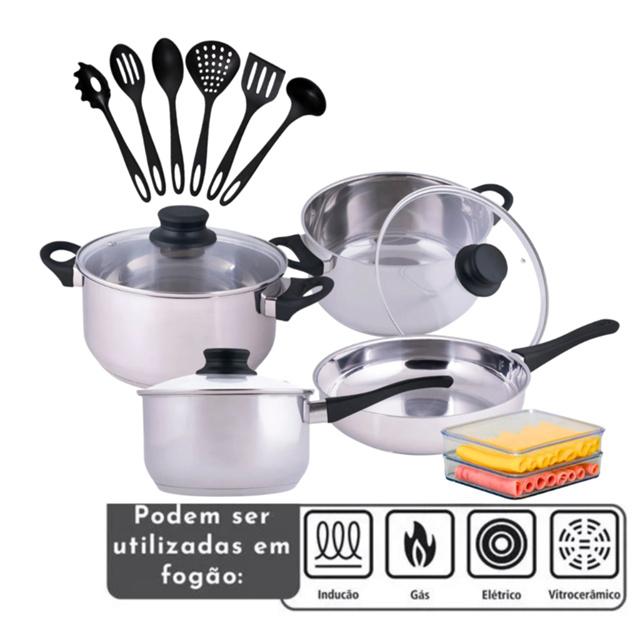 | Jogo de Panelas Aço Inox 11 Peças Fundo Triplo Indução Gás Porta Fr... este produto | R$ 319,00 | 20% | 4.9/5 | 16 |
