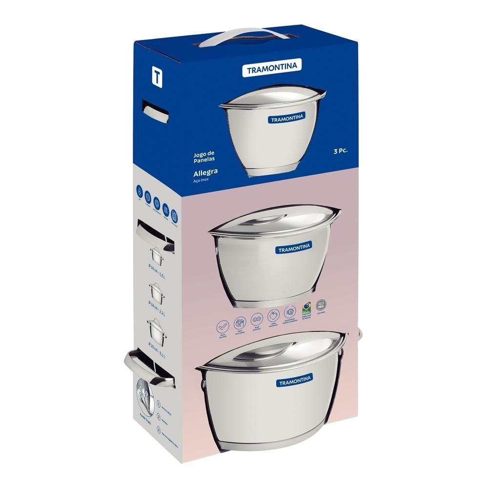 Jogo De Panelas Aço Inox Allegra 3 Peças Tramontina