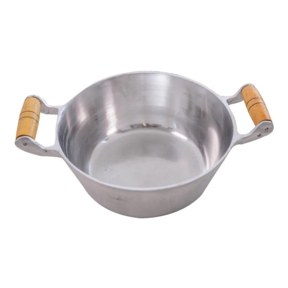 ENVIO IMEDIATO Conjunto com 5 panelas em legítimo alumínio batido super grosso com 4 mm de parede alça de madeira . Vantagens do alumínio batido Qualidade de cocção: O alumínio batido é um material nobre e consagrado na gastronomia brasileira, sua performance térmica é insuperável em virtude da espessura das panelas e das características térmicas próprias do alumínio, o selamento de carnes por exemplo pode ser realizado com perfeição pois a espessura das panelas impedem o arrefecimento do calor na superfície o que seria prejudicial ao processo. Economia: Tendo elevado calor especifico as panelas se aquecem rapidamente o que reduz o consumo de gás. Durabilidade: Não é incomum encontrar panelas de alumínio batido com 40 ou 50 anos, e mesmo depois de tanto tempo elas mantem seu brilho, isto se dá em decorrência do fato de o processo de oxidação do alumínio não gerar ferrugem, em vez disso não oxidação o alumínio gera uma camada fina de óxido de alumínio que é transparente e protege o alumínio do próprio processo de oxidação. Além disso a espessura acentuada do alumínio batido faz com que elas não se amassem, por exemplo ao cair no chão. Portanto não tenha dúvida você está adquirindo panelas que irão durar muito e permanecerão bonitas e funcionais. O que vai no seu conjunto: 1 Panela 14 acompanhada de tampa de alumínio comum. 1 Panela 16 acompanhada de tampa de alumínio comum; 1 Panela 18 acompanhada de tampa de alumínio comum; 1 Panela 20 acompanhada de tampa de alumínio comum; 1 panela 22 acompanhada de tampa de alumínio comum; Todas medidas das panelas: Panela número 14 .tem capacidade de 9 ml- 7 cm de altura - 14 cm diâmetro Panela número 16. Tem capacidade 1,3 litros-8,7cm de altura-16cm diâmetro Panela número 18.tem capacidade 1,7 litros - 8,9cm de altura - 18cm diâmetro Panela número 20.tem capacidade 2,4litros - 9,5cm de altura - 20cm diâmetro Panela número 22.tem capacidade de 3 litros - 10,2cm de altura - 22cm diâmetro