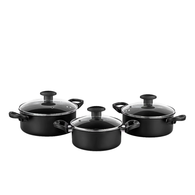 Jogo de Panelas Antiaderente 3 Peças Com Alças Tampa de Vidro