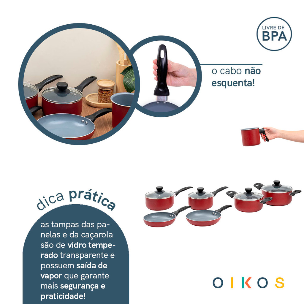 jogo de panelas antiaderente cerâmica 7 pçs vermelha - oikos