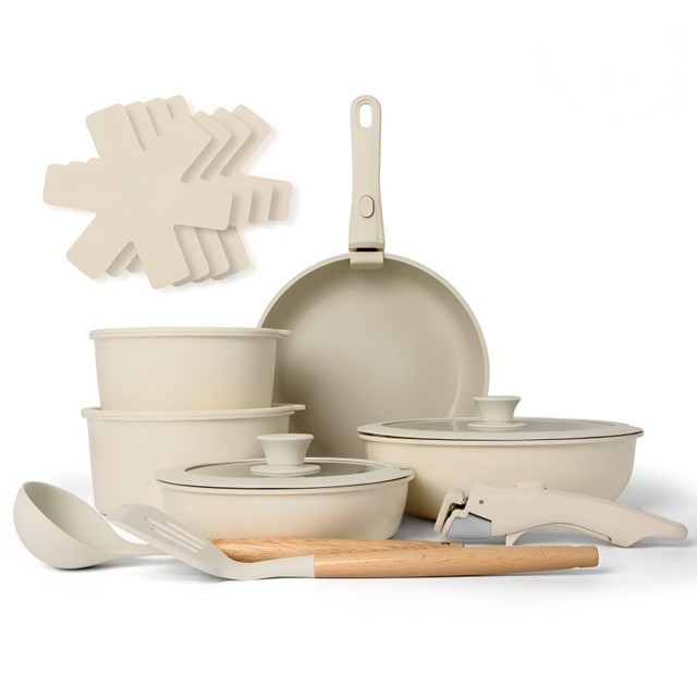 Jogo de Panelas Antiaderente com 17 Peças incluido 2 Cabos Removível