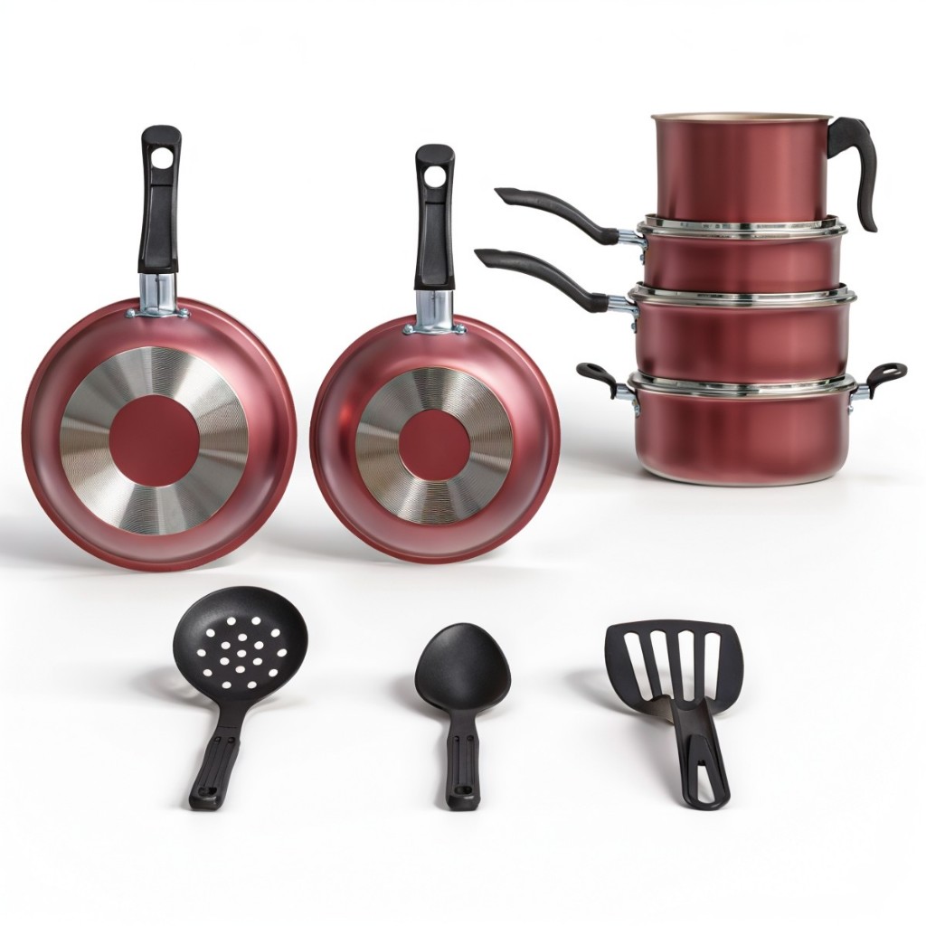 Jogo De Panelas Antiaderente De Aluminio 9 Pecas Talher De Silicone Cozinha Alimento Decoracao